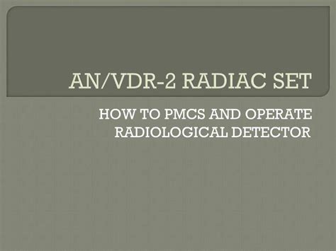 An/Vdr-2 Powerpoint. Used to locate and measure radioactivity in the.