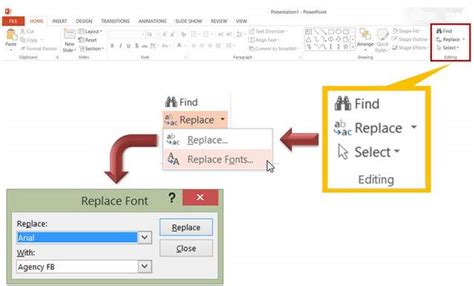 Web the easiest way to replace the fonts in your presentation is to use the replace fonts tool. The second allows you to. In the replace font dialog box, in the replace field, select the font that you want to replace. This will search out and replace all examples of a font used across your presentation. Web under slide master, select fonts > pick a font > close master view. Clicking replace fonts brings up two dropdown menus, the first of which includes all the fonts used in your deck. Pick a new font under with, and press replace. Web you can find it in the editing options under the home tab. On the home tab, in the editing group, select replace and then select replace fonts. Open replace fonts > replace.