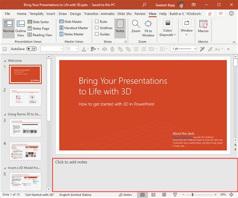 Notes Pane in PowerPoint 2013 for Windows