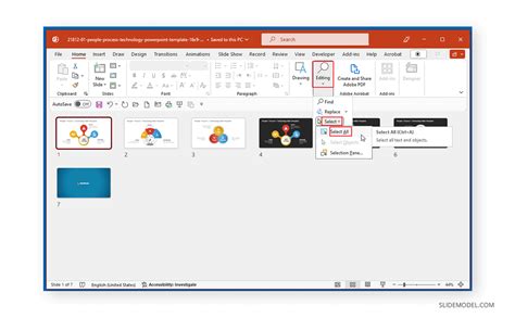 Powerpoint Select All. Select all (ctrl + a) selects everything within your document. Open your presentation at the slide where you have multiple objects.